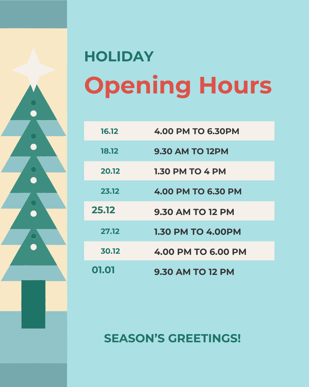 Christmas and New Years Opening Hours 2025